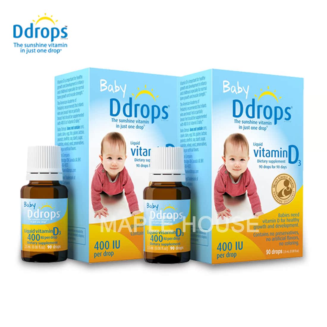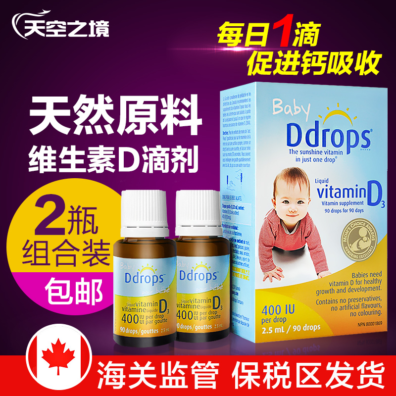 加拿大Ddrops婴儿维生素 D3 宝宝补钙滴剂drops维生素D3 90滴*2盒