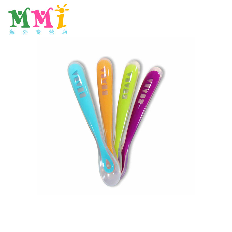 法国BEABA 婴幼儿超柔软硅胶喂食勺 一阶段软头勺 四件套