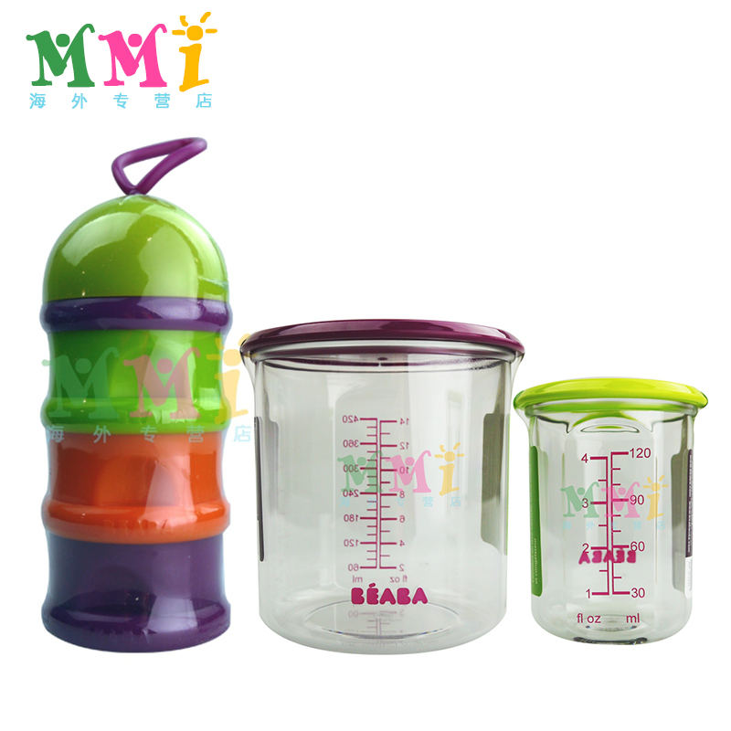 美国直邮 法国BEABA 多功能三层奶粉盒+多功能储存杯420ml+120ml