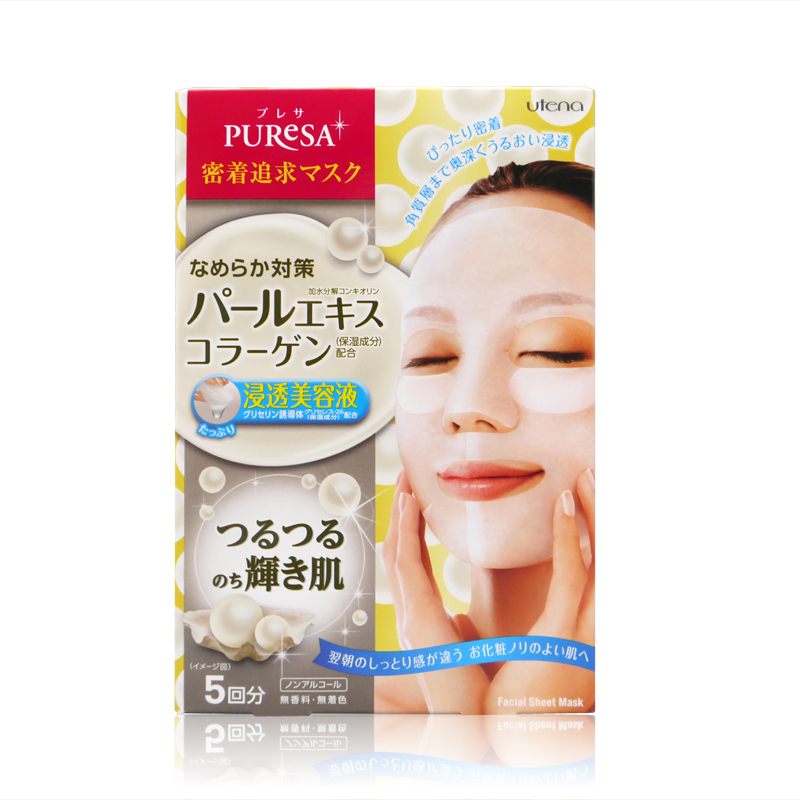 【日本直邮】utena/佑天兰puresa珍珠胶原蛋白美白紧致面膜5枚