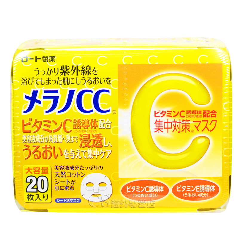日本乐敦Melano CC维他命C白皙精华美容液面膜20片