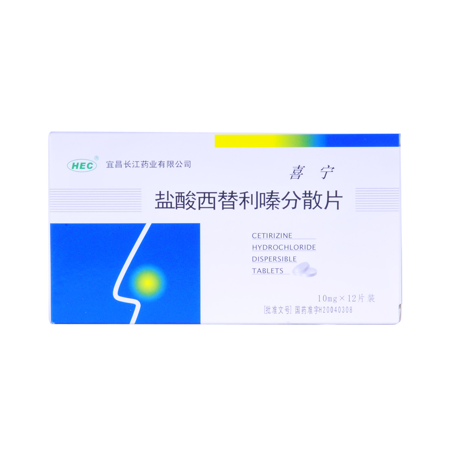 产品剂型:片剂 有效期:24个月 药品类别:化学药 用法:口服 适用人群:成人 疾病:鼻炎 药品分类:处方药 症状:流涕.鼻塞.鼻痒 药品规格:10mg*24片/盒 品牌:HEC 生产企业:宜昌长江药业有限公司 使用剂量:成人和12岁及12岁以上儿童:每次10mg(1 批准文号:国药准字H20040308 药品名称:喜宁 盐酸西替利嗪分散片 药品商品名:喜宁 药品通用名:盐酸西替利嗪分散片 查看全文