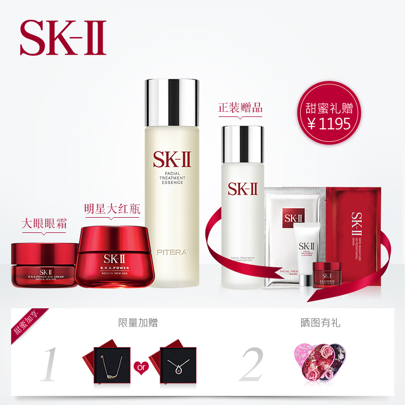 是否为特殊用途化妆品:否 限期使用日期范围:2018-01-01至2018-12-31 功效:补水 保湿 规格类型:正常规格 品牌:SK-II 单品:情人节3件套组合 适合肤质:任何肤质 产地:日本 保质期:3年 查看全文