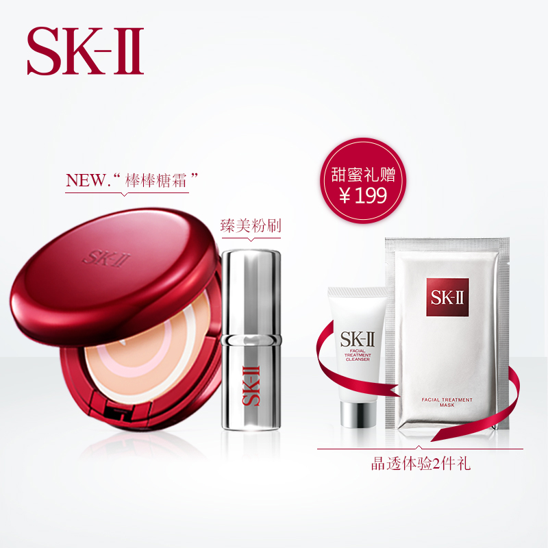 SK-II预售 sk2粉底sk2棒棒糖粉凝霜 臻美焕透晶透粉凝霜套装