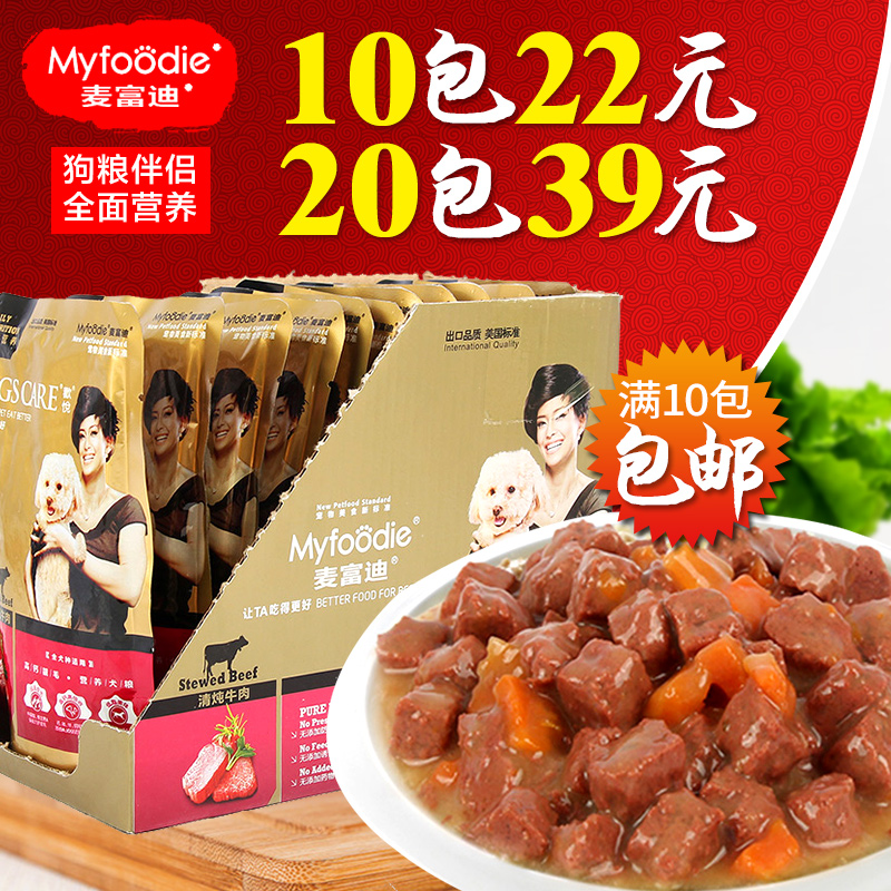 麦富迪妙鲜包 狗罐头狗狗湿粮宠物零食金毛泰迪幼犬牛肉粒包95g
