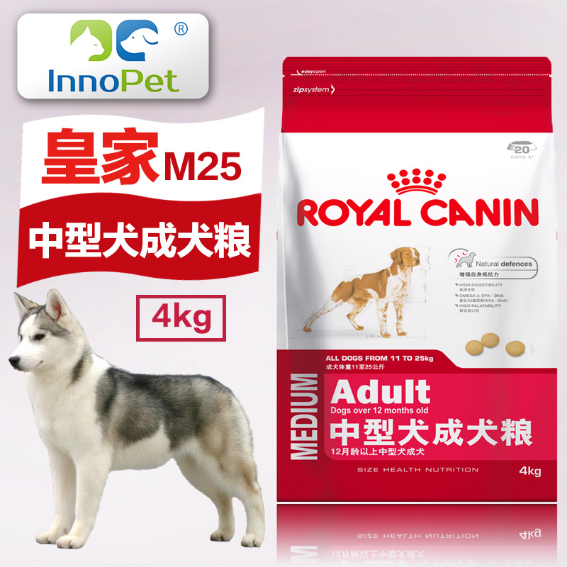 皇家狗粮中型犬成犬狗粮4kg萨摩耶哈士奇狗粮金毛幼犬粮宠物食品