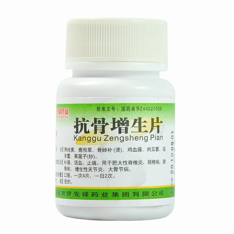 产品剂型:片剂 用法:口服 药品类别:中药 适用人群:成人 疾病:颈椎病 有效期:36个月 药品分类:处方药 症状:头晕 药品名称:抗骨增生片 药品通用名:抗骨增生片 使用剂量:一次4片,一日2次。 品牌:新峰 生产企业:广东新峰药业股份有限公司 药品规格:100片*1瓶/盒 批准文号:国药准字Z44021006 查看全文