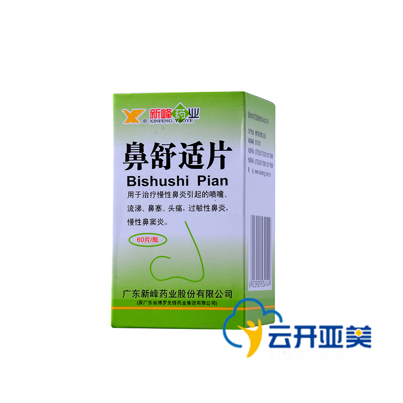 产品剂型:片剂 适用人群:不限 用法:口服 药品类别:中药 疾病:鼻炎 有效期:36个月 药品分类:处方药 症状:流涕.鼻塞 药品规格:60片*1瓶/盒 品牌:新峰 药品名称:鼻舒适片 药品通用名:鼻舒适片 使用剂量:口服。一次4~5片,一日3次。 批准文号:国药准字Z44022750 生产企业:广东新峰药业股份有限公司(原广东省博罗先锋药业集团有限 查看全文