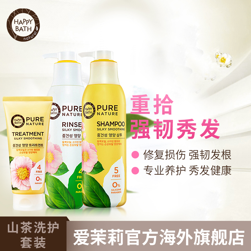 爱茉莉洗护套装HappyBath济州山茶花丝质顺滑洗发水护发素420ml*3