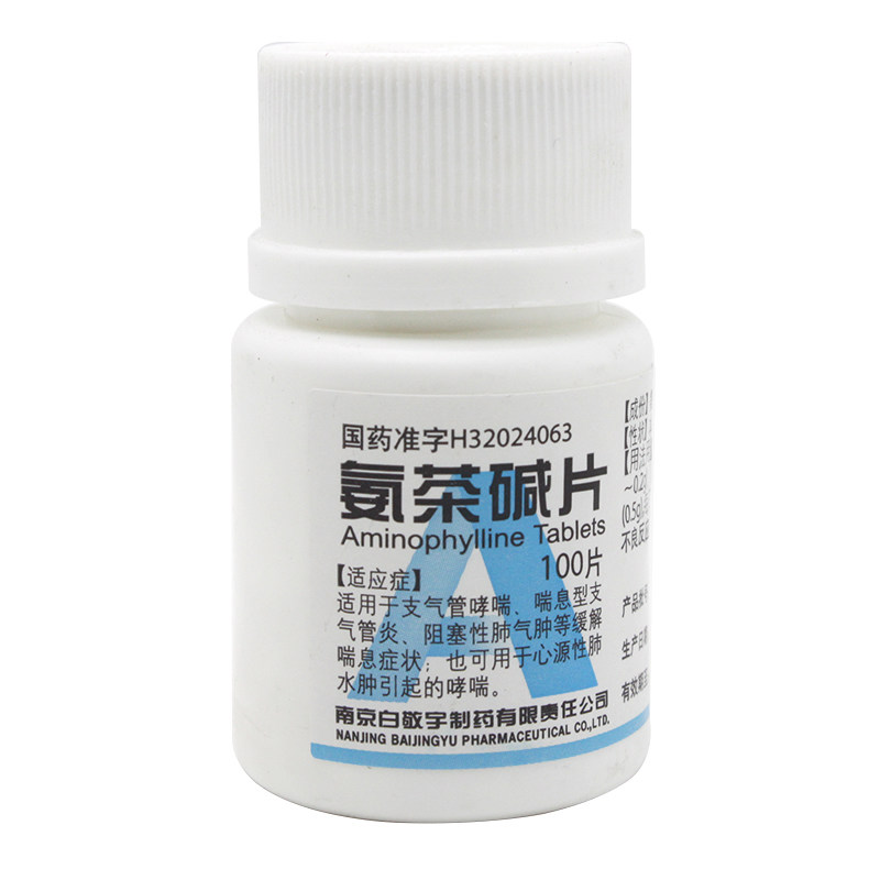 产品剂型:片剂 适用人群:不限 药品类别:化学药 用法:口服 药品分类:处方药 有效期:18个月 疾病:支气管哮喘 症状:喘息气促 生产企业:南京白敬宇制药有限责任公司 药品规格:0.1g*100片/瓶 品牌:白敬宇 药品名称:氨茶碱片 药品通用名:氨茶碱片 使用剂量:每次1~2片(0.1~0.2g),每日3~6片(0.3~0.6g)。 批准文号:国药准字H32024063 查看全文