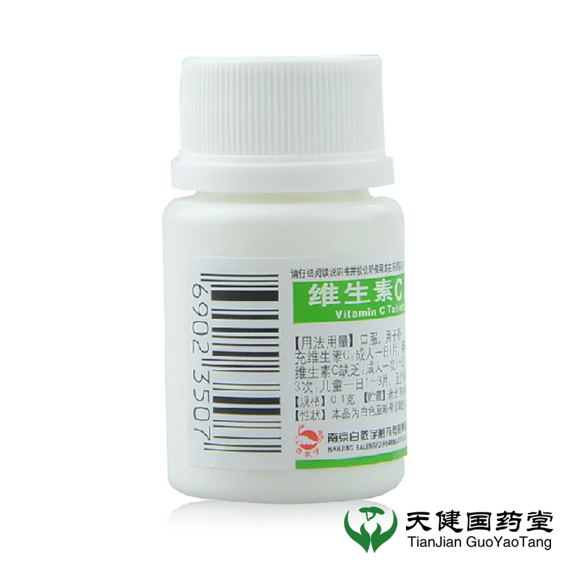 产品剂型:片剂 药品分类:非处方药 套餐类型:标准装 用法:口服 类别:化学药 症状:发育迟缓 适用人群:儿童.成人 疾病:维生素缺乏症 有效期:18个月 药品名称:维生素C片 药品通用名:维生素C片 规格:0.1g*100片/瓶 生产企业:南京白敬宇制药有限责任公司 品牌:白敬宇 使用剂量:成人一次1-2片,儿童一日1-3片。 批准文号:国药准字H32025834 查看全文