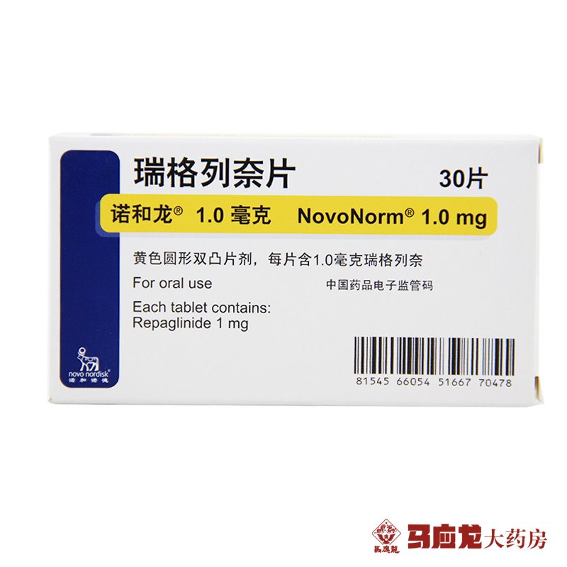 产品剂型:片剂 适用人群:不限 药品类别:化学药 有效期:60个月 用法:口服 药品分类:处方药 疾病:糖尿病 症状:多尿 药品通用名:瑞格列奈片 品牌:诺和龙 批准文号:H20130023 生产企业:丹麦诺和诺德公司 药品名称:诺和龙 瑞格列奈片 药品商品名:诺和龙 药品规格:1.0mg*30片/盒 使用剂量:随就餐次数服药,餐前15分钟服药、初始剂量一次0.5mg\即半片 查看全文