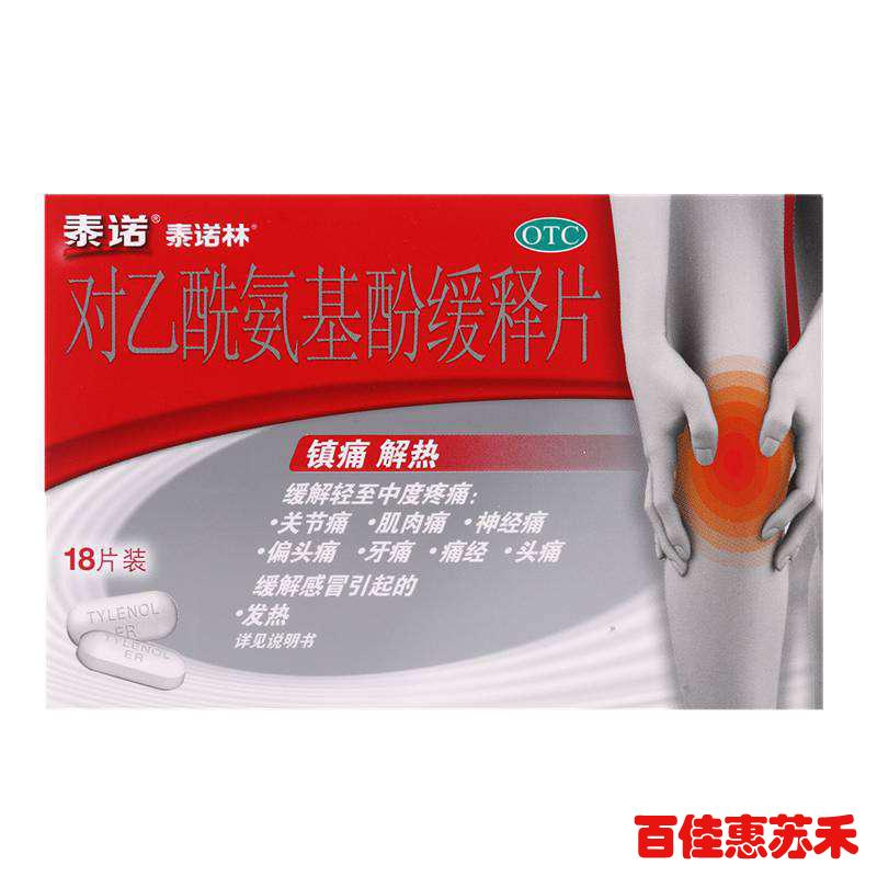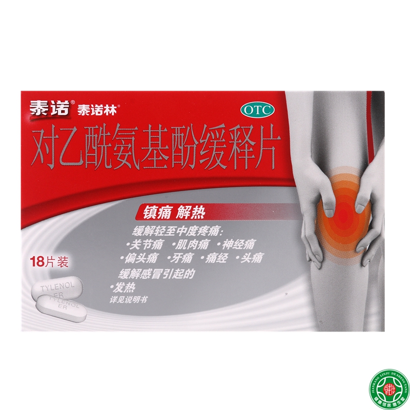 泰诺林对乙酰氨基酚缓释片0.65g*18片发热头痛牙痛神经痛痛经包邮
