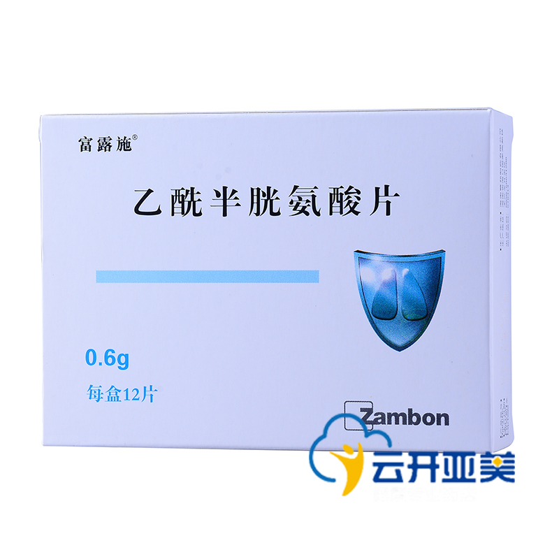产品剂型:片剂 药品类别:化学药 用法:口服 适用人群:成人 有效期:36个月 药品分类:处方药 疾病:上呼吸道感染 品牌:富露施 生产企业:海南赞邦制药有限公司 药品规格:0.6g*12片/盒 使用剂量:成人 批准文号:国药准字H20080326 症状:咳痰.咽痛 药品名称:乙酰半胱氨酸片 药品通用名:乙酰半胱氨酸片 查看全文