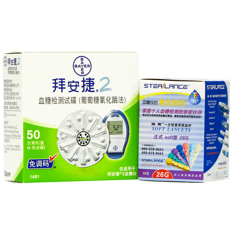 美国进口拜耳拜安捷2血糖试纸50片配50支采血针JR