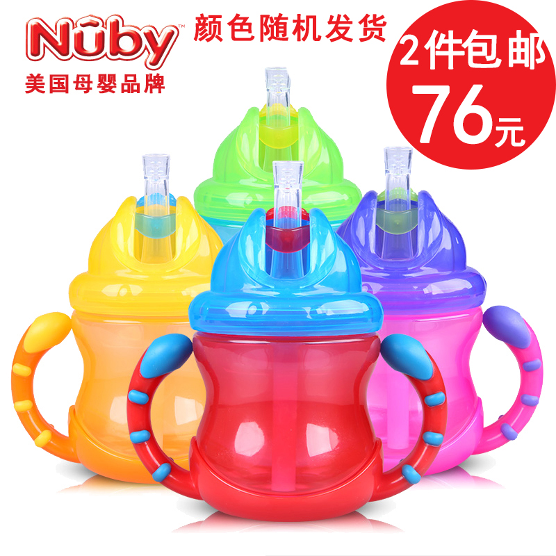 美国原装nuby努比儿童防漏吸管杯 婴儿训练学饮杯 宝宝带手柄水杯