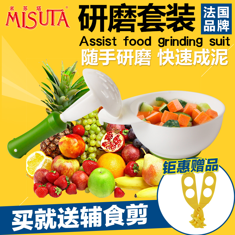米苏塔研磨碗宝宝食物研磨器婴儿辅食碗手动工具碾磨调理器