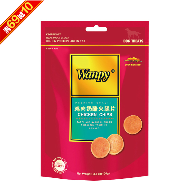 波奇网 宠物食品顽皮鸡肉奶酪火腿片100g狗零食满69元十六省包邮