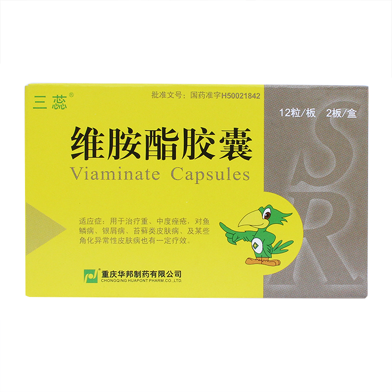 产品剂型:胶囊 适用人群:不限 有效期:24个月 疾病:痤疮 药品类别:化学药 用法:口服 药品分类:处方药 生产企业:重庆华邦制药有限公司 症状:油脂栓 使用剂量:成人每次1-2粒,每日三次 品牌:三蕊 批准文号:国药准字H50021842 药品名称:维胺酯胶囊 药品规格:25mg*24粒/盒 药品通用名:维胺酯胶囊 查看全文