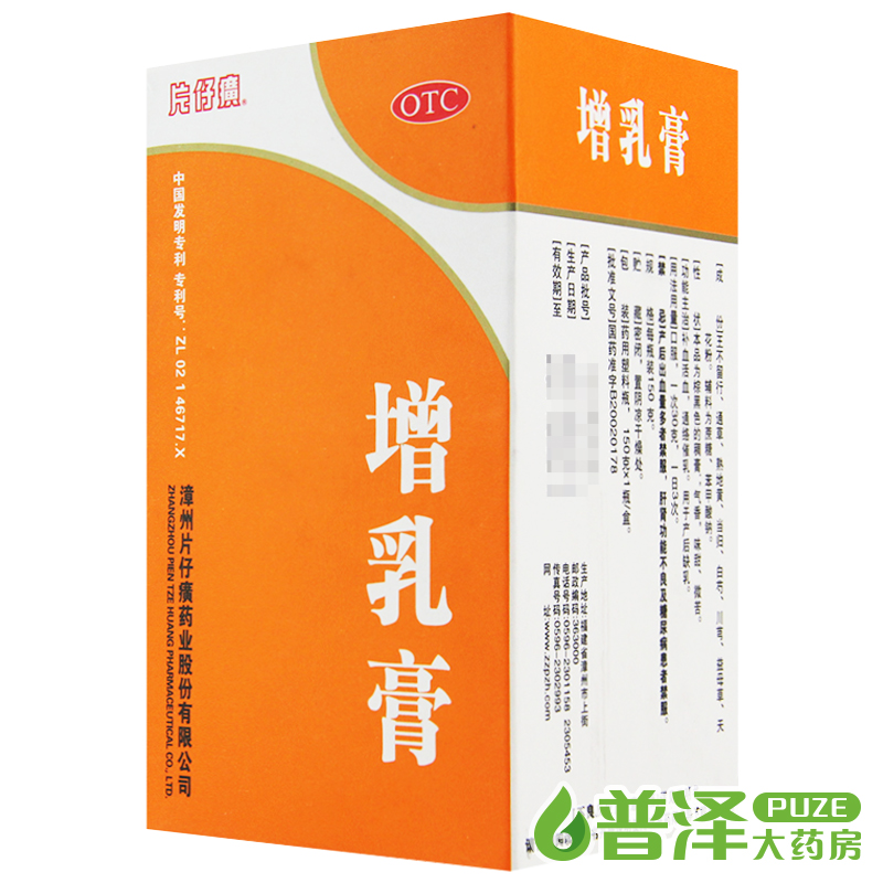 品牌:PZH/片仔癀 药品分类:非处方药 用法:口服 产品剂型:软膏剂 有效期:36个月 类别:中药 适用人群:妇科 规格:150g*1瓶/盒 生产企业:漳州片仔癀药业股份有限公司 使用剂量:一次30克,一日3次 疾病:补血活血.气血两虚.产后缺乳.缺乳 少乳.通络催乳 症状:气血两亏.产后缺乳 药品名称:增乳膏 药品通用名:增乳膏 批准文号:国药准字B20020178 查看全文