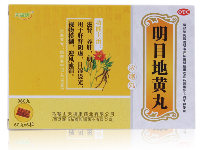 适用人群:不限 药品分类:非处方药 产品剂型:丸剂 用法:口服 有效期:36个月 类别:中药 规格:360丸*1瓶/盒 使用剂量:一次8-10丸,一日3次 疾病:视力疲劳症 品牌:天福康 生产企业:马鞍山天福康药业有限公司 药品名称:明目地黄丸(浓缩丸) 药品通用名:明目地黄丸(浓缩丸) 症状:目涩畏光.视力模糊 批准文号:国药准字Z34060668 查看全文