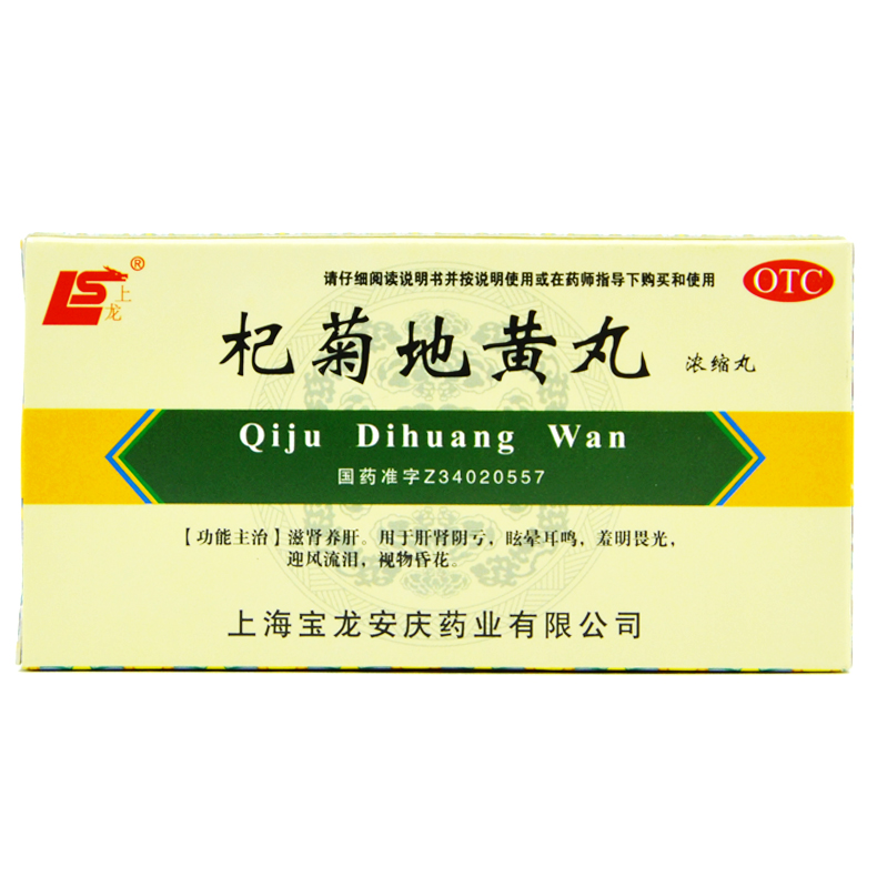 药品分类:非处方药 产品剂型:丸剂 套餐类型:标准装 用法:口服 有效期:36个月 类别:中药 规格:200丸*1瓶/盒 适用人群:儿童.成人 使用剂量:一次8丸,一日3次 疾病:肾阴亏 症状:头晕耳鸣.耳鸣.视物模糊 品牌:上龙 批准文号:国药准字Z34020557 生产企业:上海宝龙安庆药业有限公司 药品名称:杞菊地黄丸(浓缩丸) 药品通用名:杞菊地黄丸(浓缩丸) 查看全文