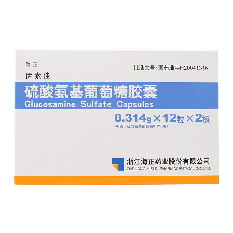 海正 伊索佳 硫酸氨基葡萄糖胶囊 0.314g*12粒*2板/盒