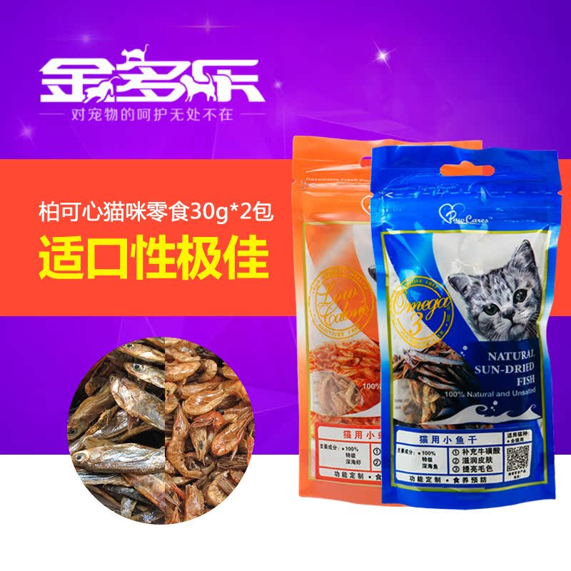柏可心猫零食 天然健康小虾干鱼干 猫咪零食25g*2包 猫猫零食包邮