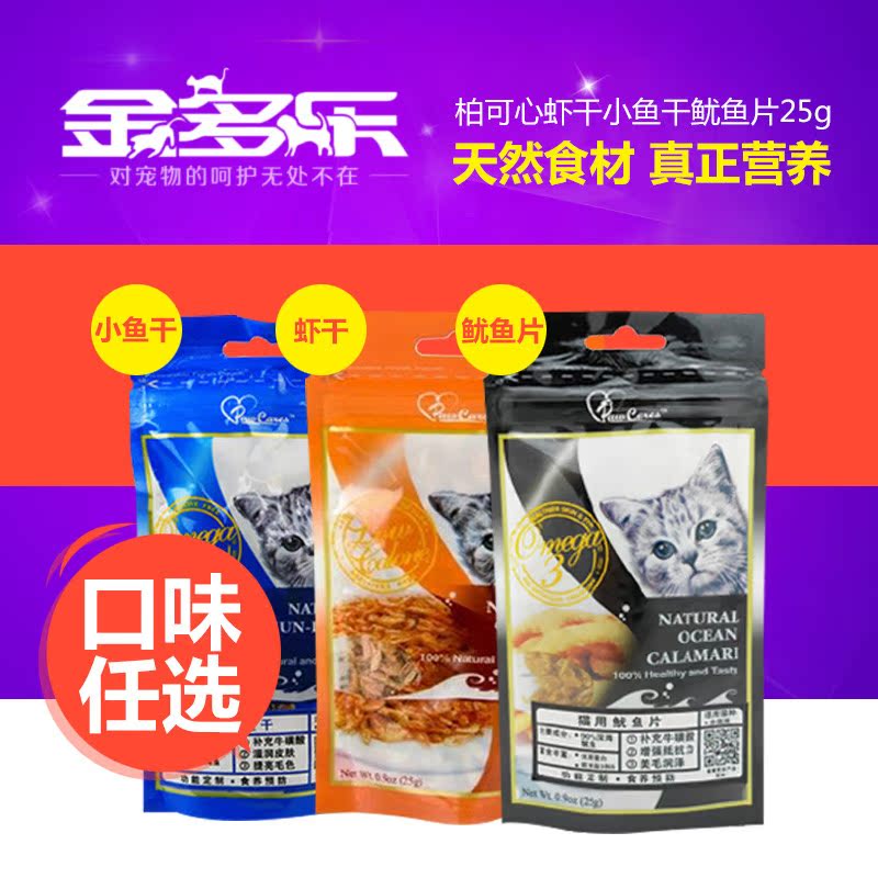 柏可心猫零食 天然健康虾干小鱼干鱿鱼片25g 宠物猫咪零食 包邮