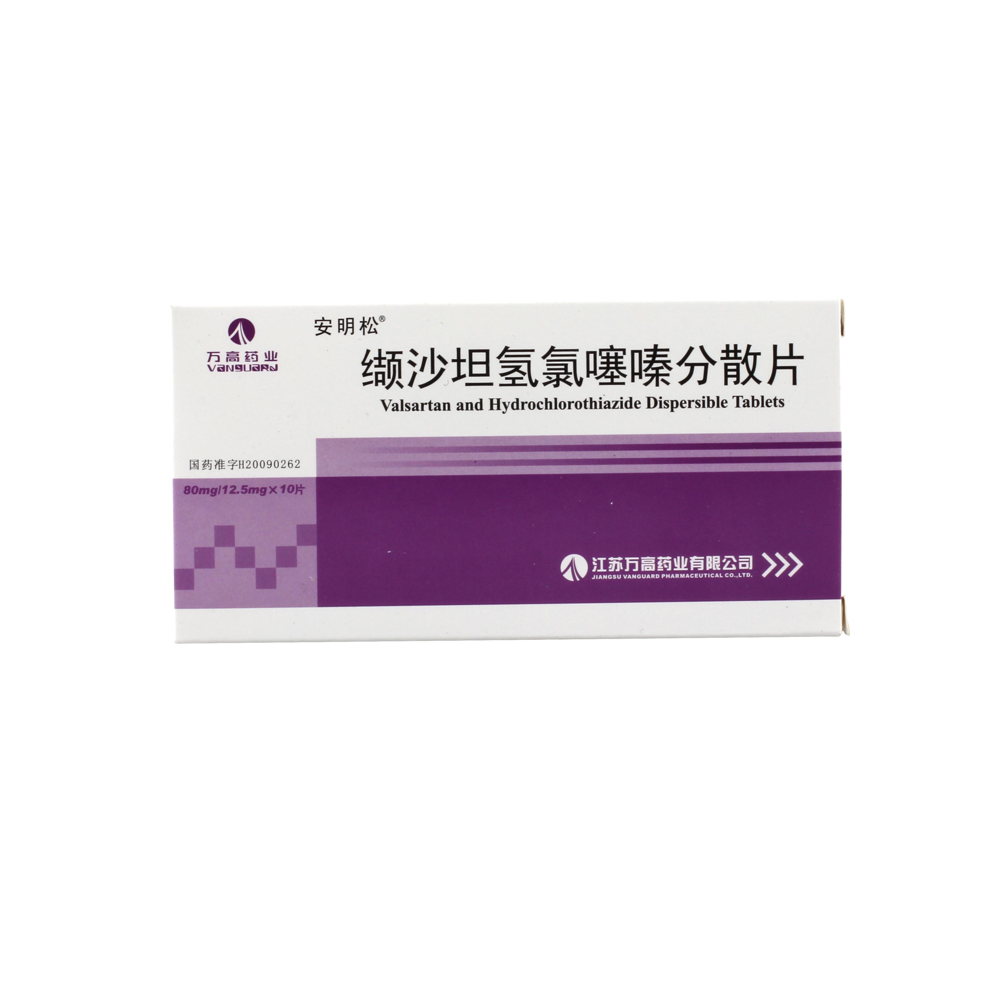 安明松 缬沙坦氢氯噻嗪分散片 80mg:12.5mg*10片/盒