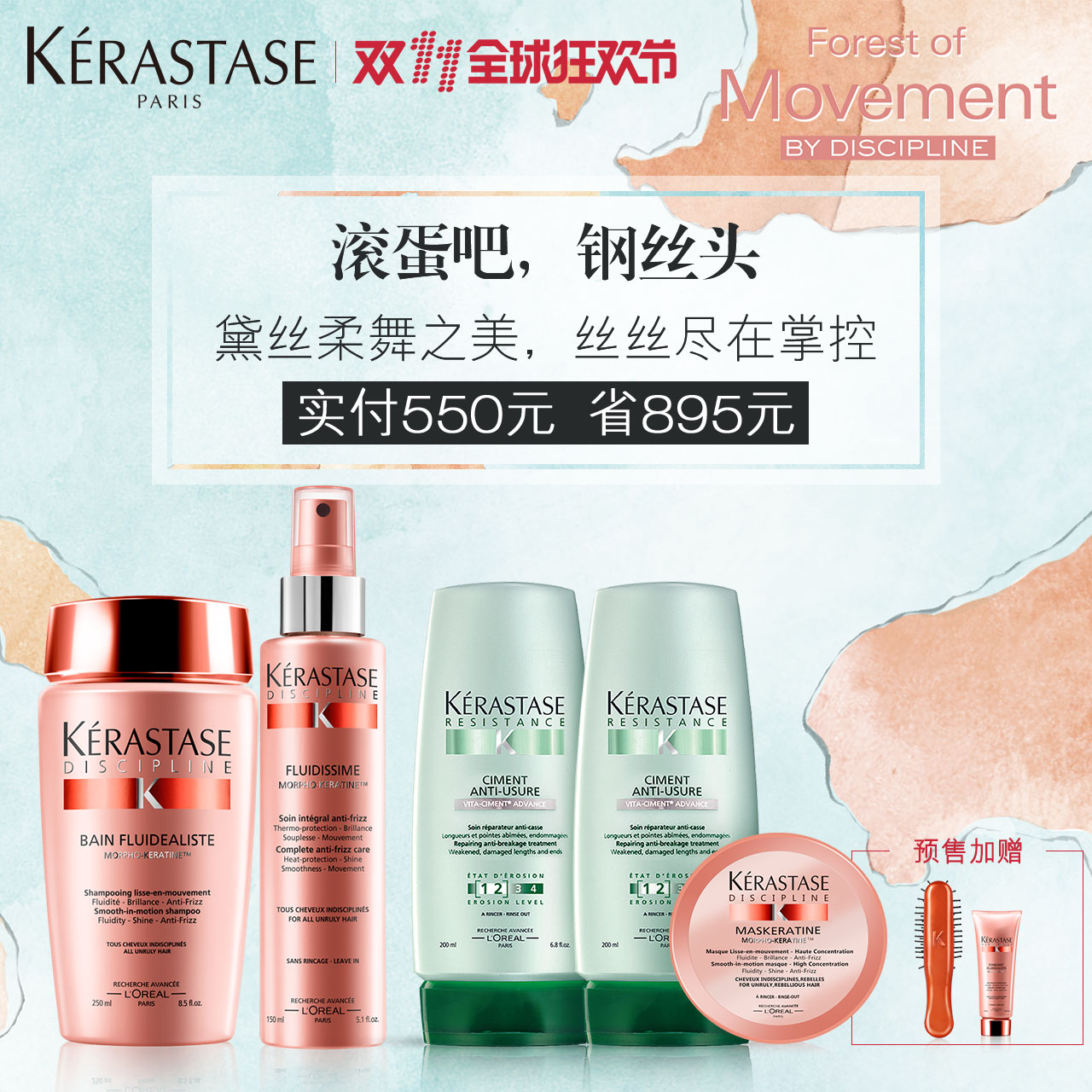 【天猫预售】卡诗黛丝舞美礼盒黛丝逸柔洗发水+喷雾 提升秀发强韧