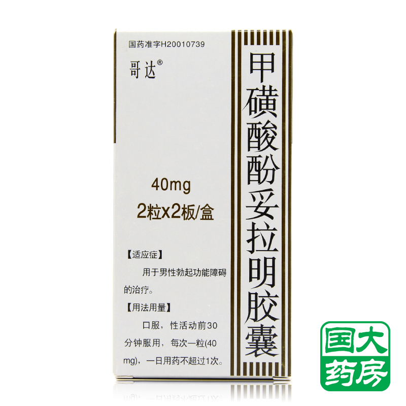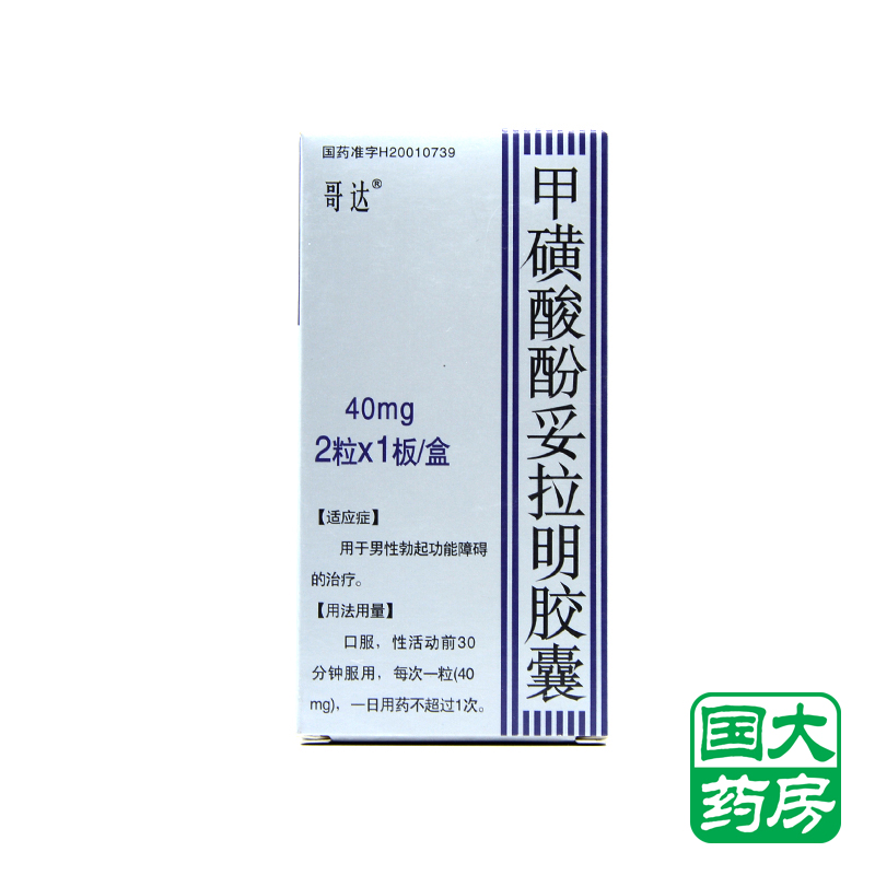 的热门产品哥达 启伟 甲磺酸酚妥拉明胶囊 40mg*2粒/盒