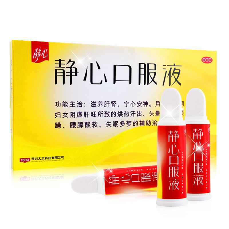 有效期:24个月 药品分类:非处方药 套餐类型:标准装 用法:口服 产品剂型:口服液 类别:中药 适用人群:妇科 生产企业:深圳太太药业有限公司 疾病:更年期综合症 症状:失眠 品牌:静心 规格:15ml*10支/盒 批准文号:国药准字B20020088 药品名称:静心口服液 药品通用名:静心口服液 使用剂量:一次15毫升,一日2次。 查看全文