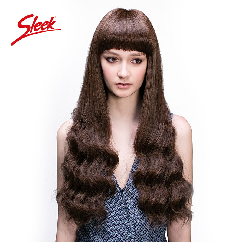 sleek假发时尚女 齐刘海中长卷发大波浪整顶梨花头 逼真发套01034