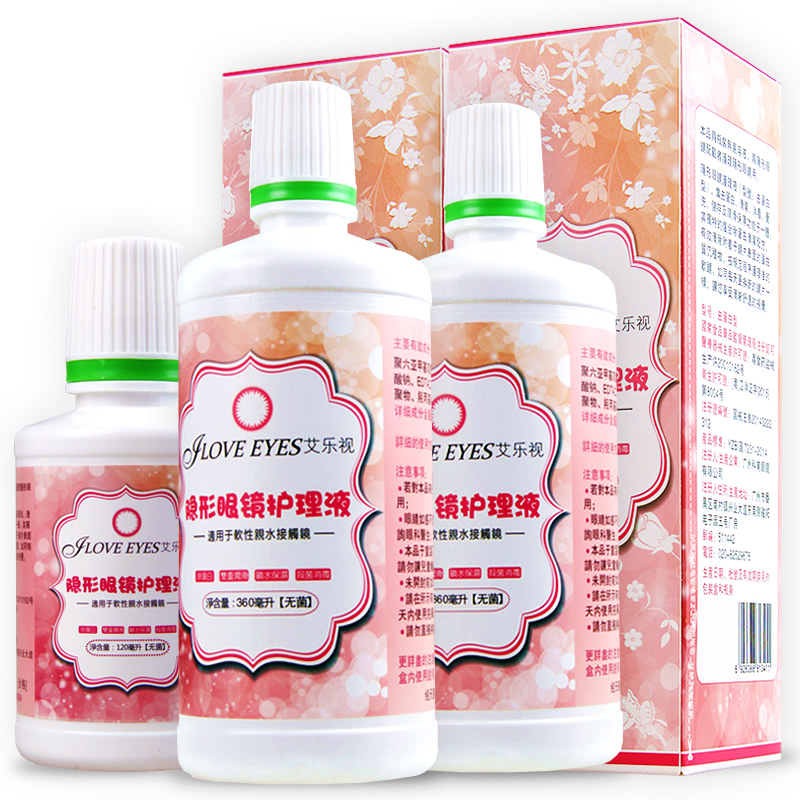 的热门产品送镜盒]艾乐视隐形眼镜美瞳护理液360*2+120ml影形近视眼睛眼药水