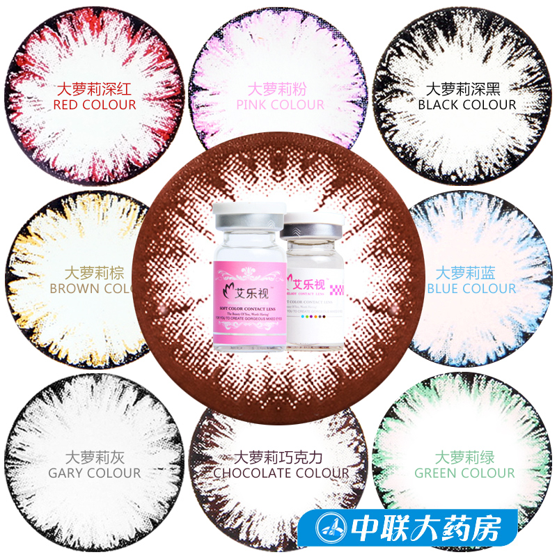 送3]艾乐视美瞳大直径年抛14.5混血紫红绿蓝粉灰黑巧隐形眼镜韩国