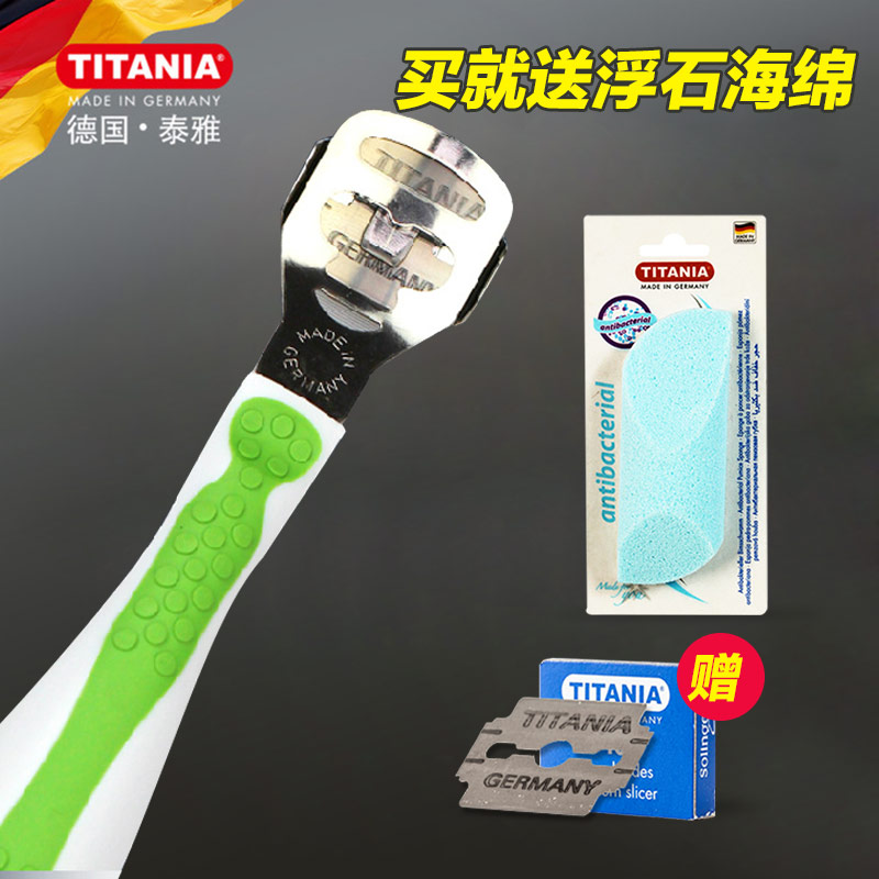 德国TITANIA泰雅去死皮刀+浮石海绵刨脚修脚磨脚工具套装
