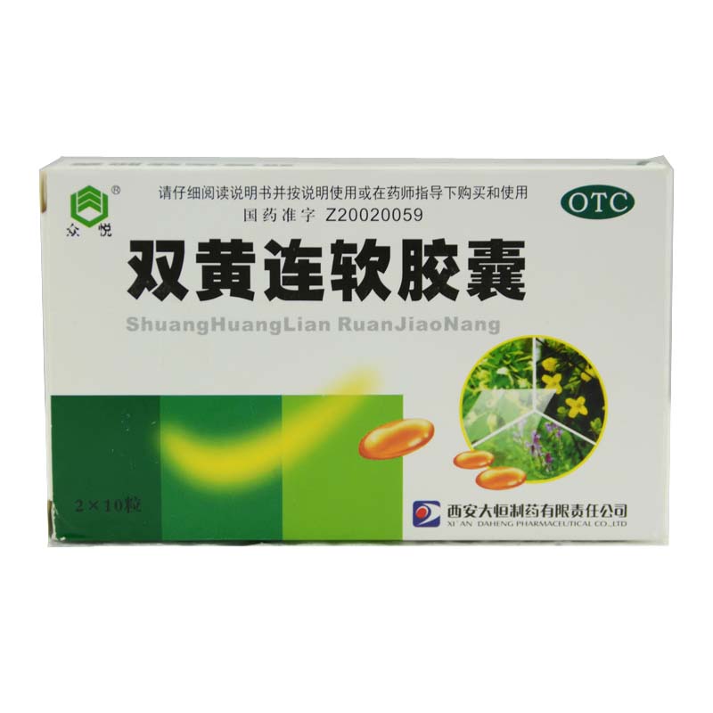 产品剂型:胶囊 适用人群:不限 有效期:24个月 药品分类:非处方药 用法:口服 类别:中药 症状:发热 疾病:风热感冒 使用剂量:一次5粒,一日3次 品牌:众悦 生产企业:西安大恒制药有限责任公司 药品名称:双黄连软胶囊 药品通用名:双黄连软胶囊 规格:0.65g*20粒/盒 批准文号:国药准字Z20020059 查看全文