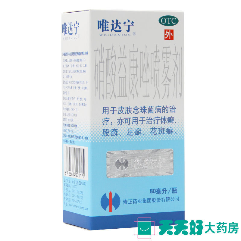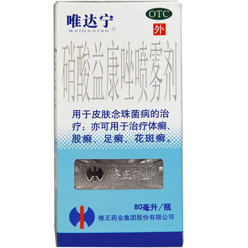 修正 唯达宁 硝酸益康唑喷雾剂 80ml/瓶 体癣 股癣 足癣 包邮