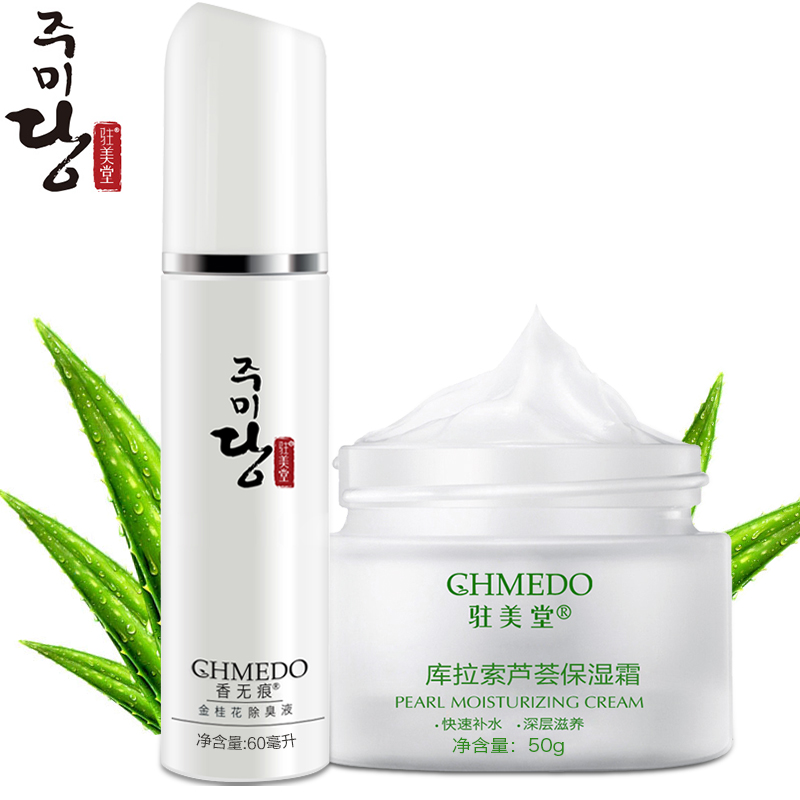 驻美堂去狐臭腋臭脚臭止汗喷雾保湿补水嫩肤水润芦荟早晚面霜套装