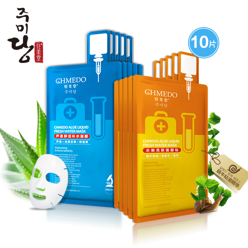 驻美堂芦荟鲜活+水嫩亮肤保湿补水果纤面膜套装10片控油滋润美肤
