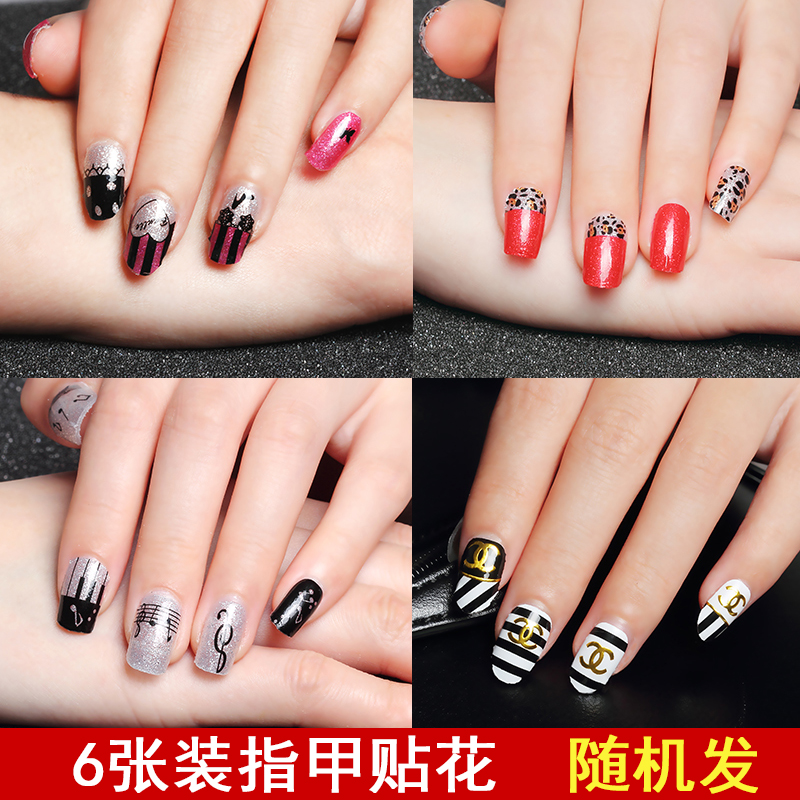 6张装 防水美甲贴纸贴花假指甲贴片可爱卡通指甲贴纸全贴