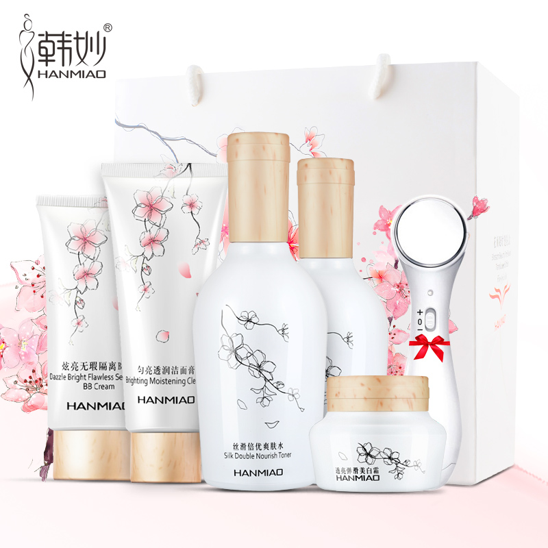 的热门产品韩妙花颜凝时美白5件洁面膏爽肤水美白霜平衡乳雪莲面膜