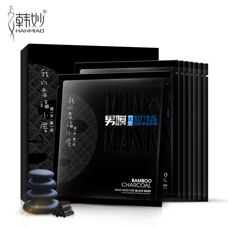 韩妙男膜竹炭细致保湿面膜贴8片秋冬补水保湿控油 男士黑膜收毛孔