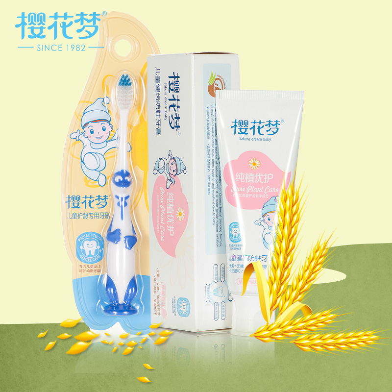 樱花梦儿童可吞咽换牙期健齿防蛀牙膏宝宝牙膏牙刷套装