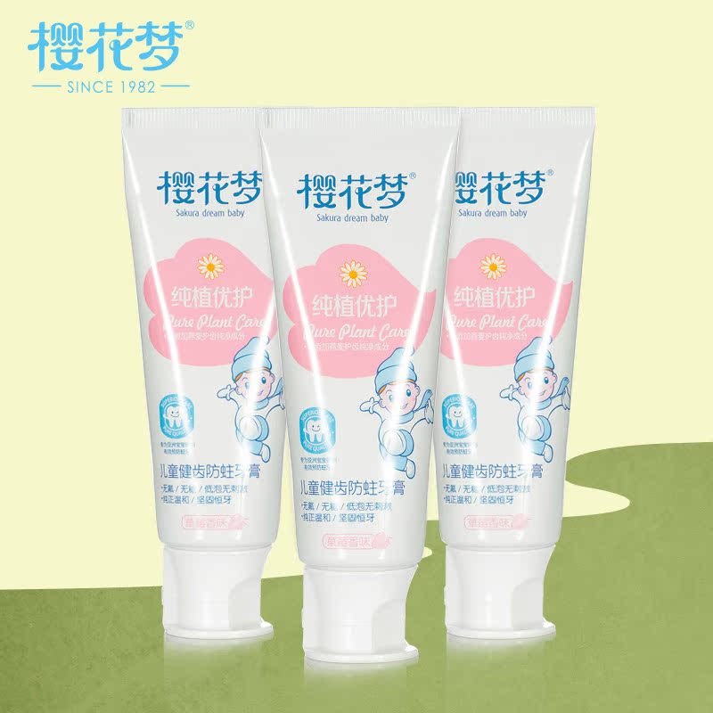 樱花梦儿童健齿防蛀牙膏换牙期3只装 儿童无氟可吞咽牙膏