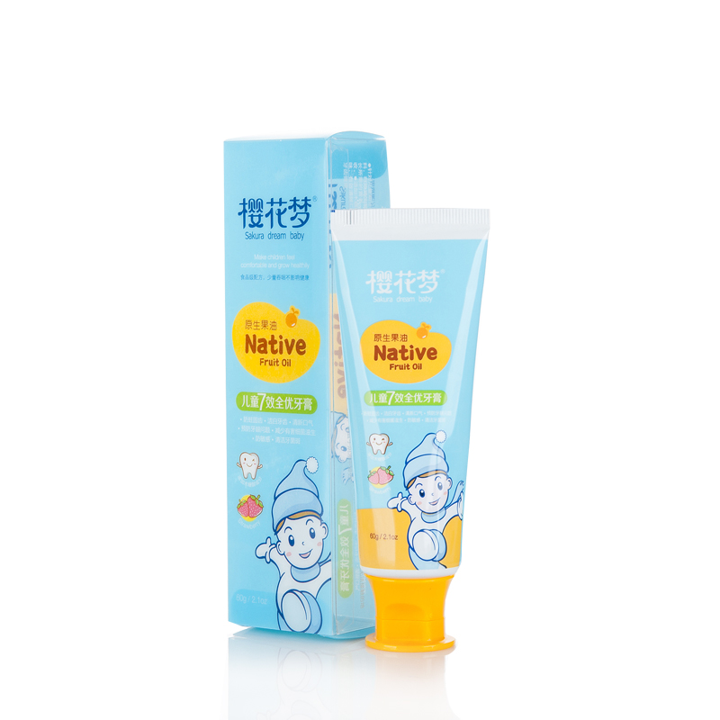 樱花梦儿童七效全优牙膏宝宝营养可吞咽牙膏防蛀草莓味香橙味