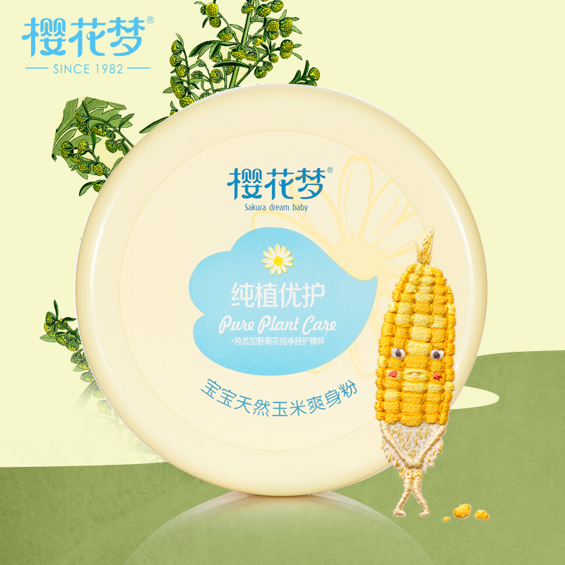 樱花梦婴儿爽身粉带粉扑 天然玉米粉 护肤粉 爽身粉不含滑石粉