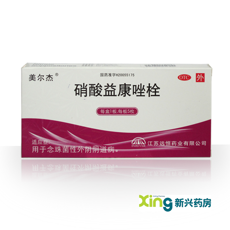 美尔杰 硝酸益康唑栓 5枚 念珠菌性阴道病 妇科 女性 药品