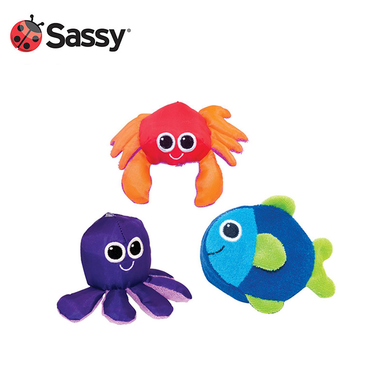 美国Sassy婴幼儿戏水玩具 宝宝沐浴洗澡玩具儿童海绵 3件套